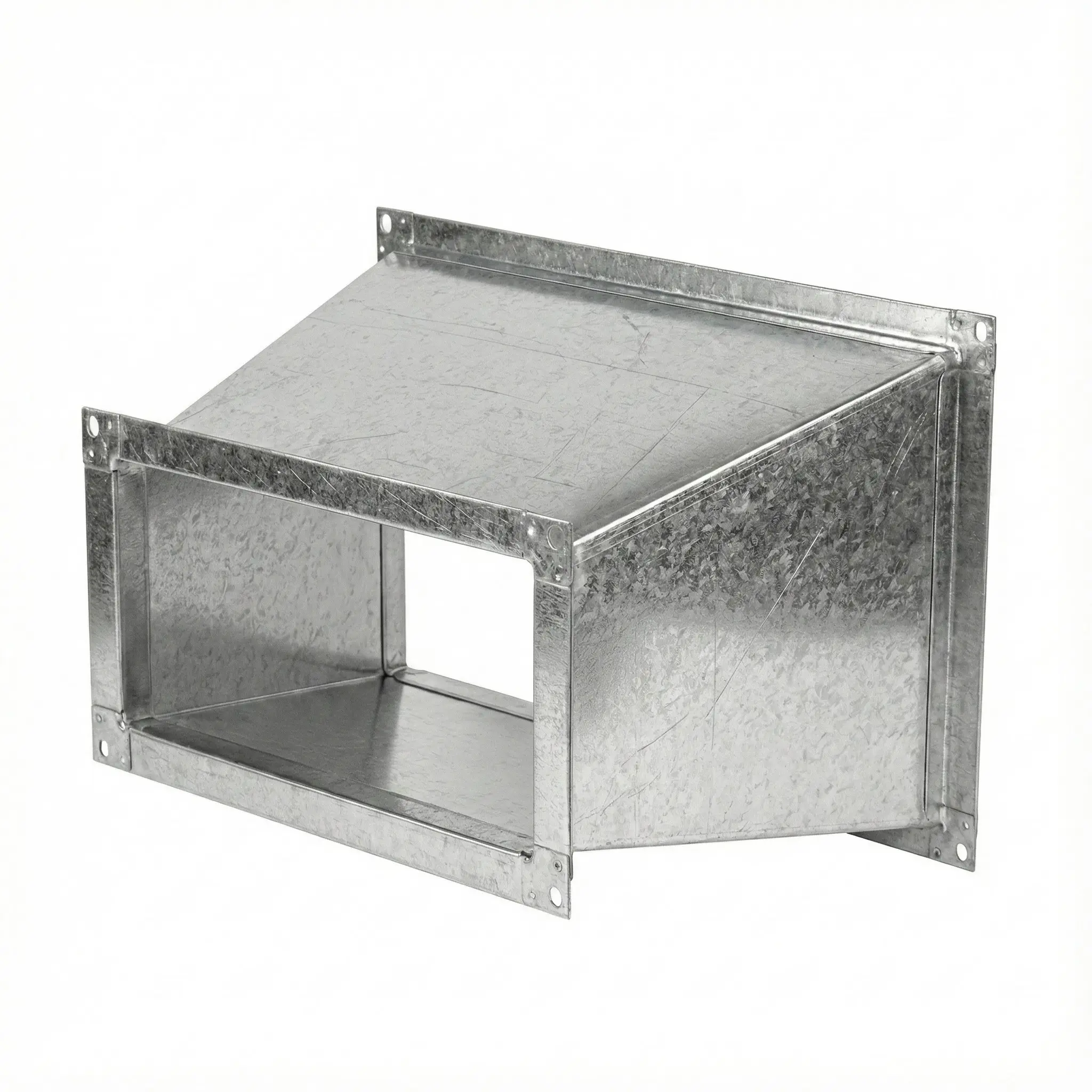 Переход прямоугольного сечения предназначен для соединения воздуховодов различного размера в системах общеобменной вентиляции и кондиционирования. Изделие обеспечивает герметичную стыковку участков магистрали без утечек воздуха и сохранение проектной конфигурации вентиляционной трассы.
